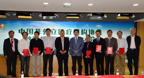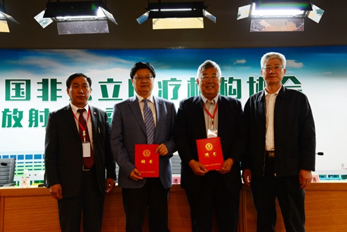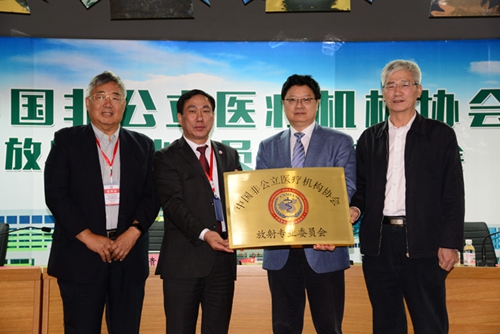 5月8日上午,中国非公立医疗机构协会放射专业委员会成立大会开幕式隆重召开。开幕式由中国非公立医疗机构协会驻会副会长赵书贵主持,中华国际医学交流基金会理事长戴建平教授、中国非公立医疗机构协会副会长兼秘书长郝德明同志,中国医科大学盛京医院院长、专委会主任委员郭启勇教授主席台就坐。开幕式上,领导们为新当选的放射专委会主任委员、副主任委员及秘书长颁发了聘书,并举行了中国非公立医疗机构协会放射专业委员会的授牌仪式。