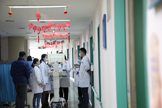 上海市复旦大学附属儿科医院的走廊里,随处可见的新春挂饰、贴纸让年味渐浓,可忙碌工作的气氛却不见减少。