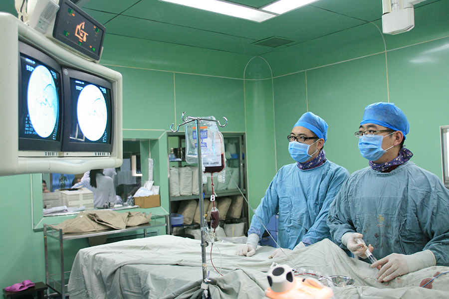 夜深了,航天中心医院介入手术室内却灯火通明,外周血管介入科的医生团队和介入手术室的护士团队一起完成了一台成功的急诊手术,成功挽救了患者的生命。(航天中心医院供图)