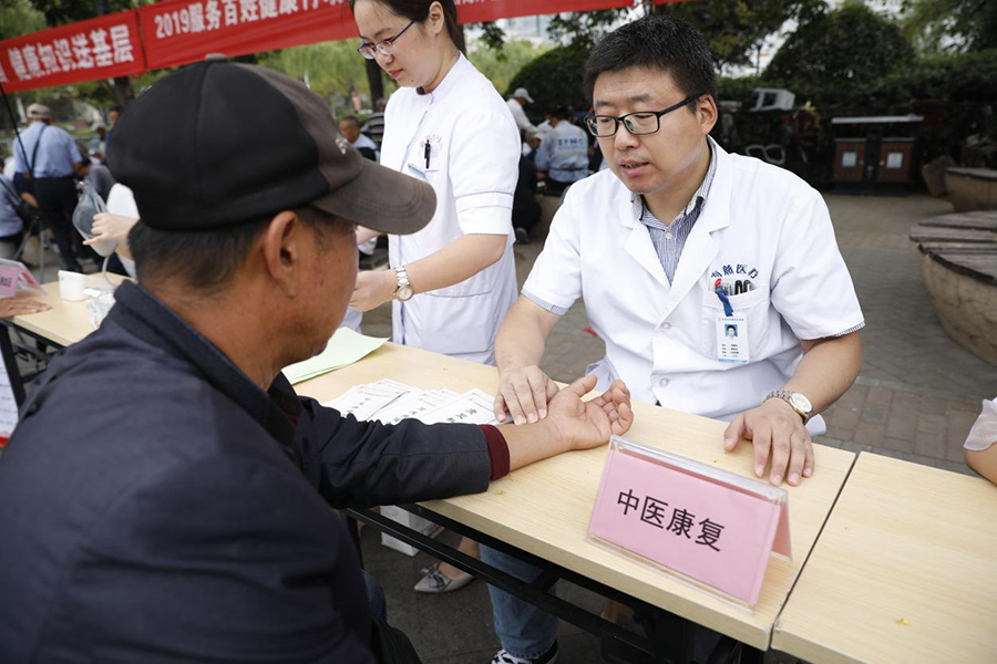 国庆期间,青岛西海岸新区中医医院举办主题为“礼赞共和国 智慧新生活--岐黄天使助力全民健康”、“服务百姓健康行动”、“医心报国 健康知识送基层”等系列主题义诊活动,为广大市民、社区居民提供健康义诊、咨询服务、健康科普及相关辅助检查等免费服务项目,让老百姓在家门口就能享受到专业的医疗服务。(青岛西海岸新区中医医院供图)