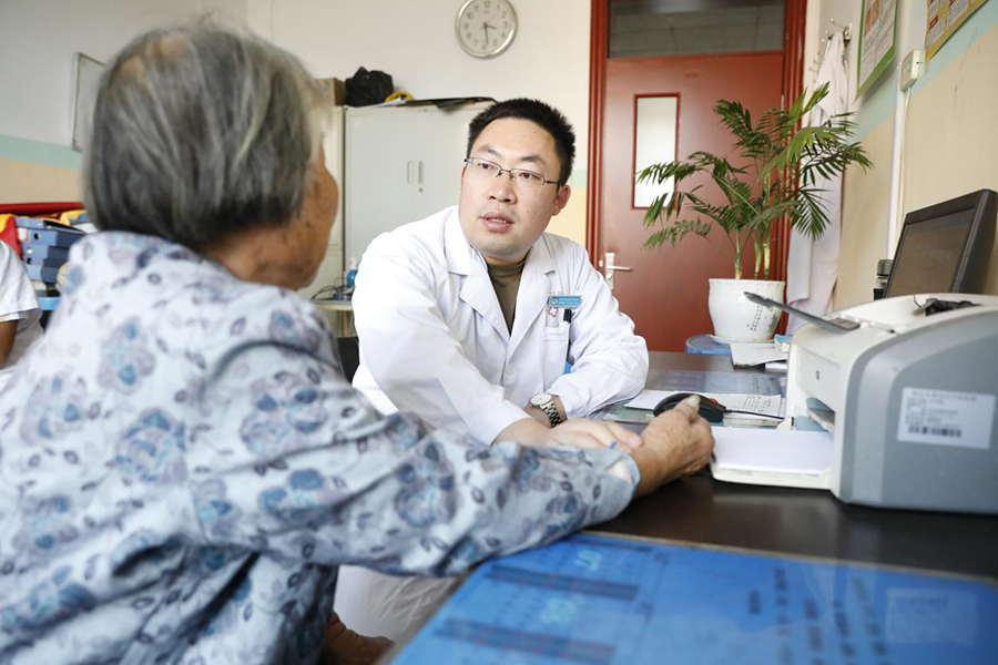 走进青岛西海岸新区中医医院内科住院病房楼三楼,脑病科韩培海医生依旧在为患者把脉问诊。当问起他国庆假期与平时出诊有什么区别时,他表示:“没什么区别,只要有患者需要救治,我们时刻准备着。”(青岛西海岸新区中医医院供图)
