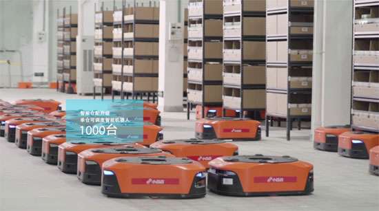 小药药单仓可调度智能机器人1000台,帮助仓库员工提高效率