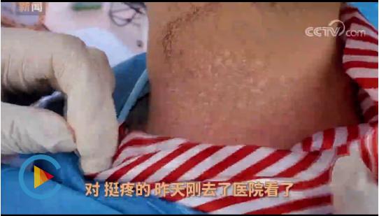 连日来在近35度的高温下工作,护士段亚飞晒伤之后仍坚守岗位。