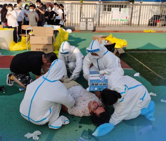 连日高温,身着密闭防护服的医务人员和社区工作者更加辛苦,检测点医护人员体力不支中暑休息的场景也不时出现。