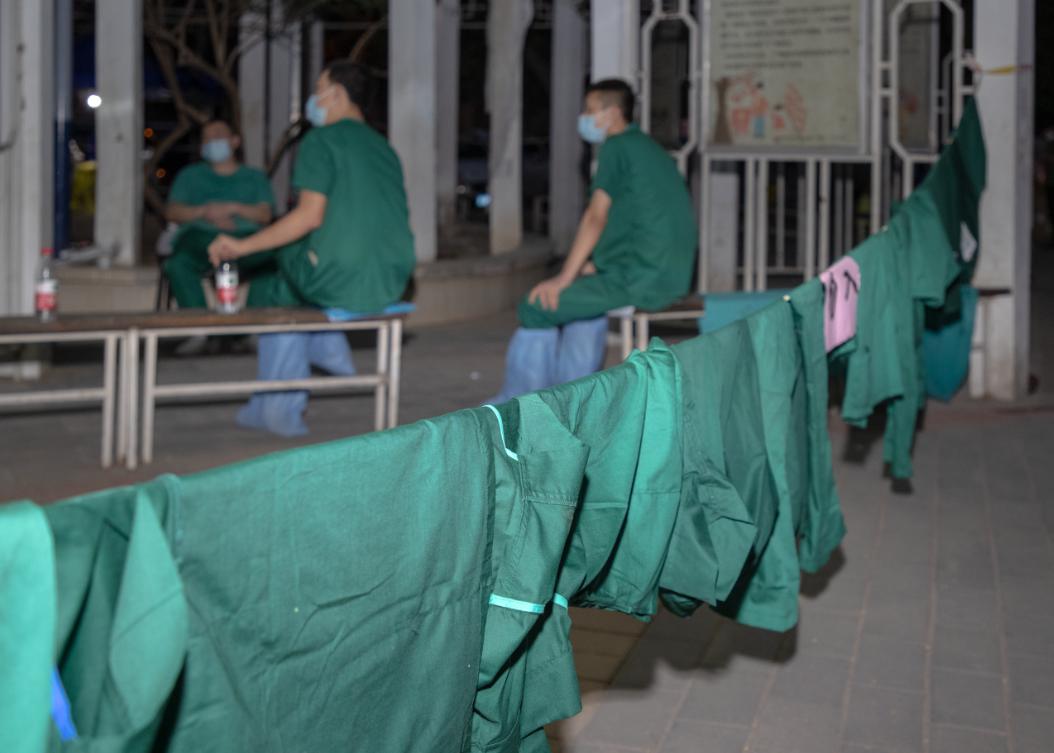 为了与疫情赛跑,满足公众检测需求,采样点的医护人员常常是挑灯夜战,工作到深夜凌晨。