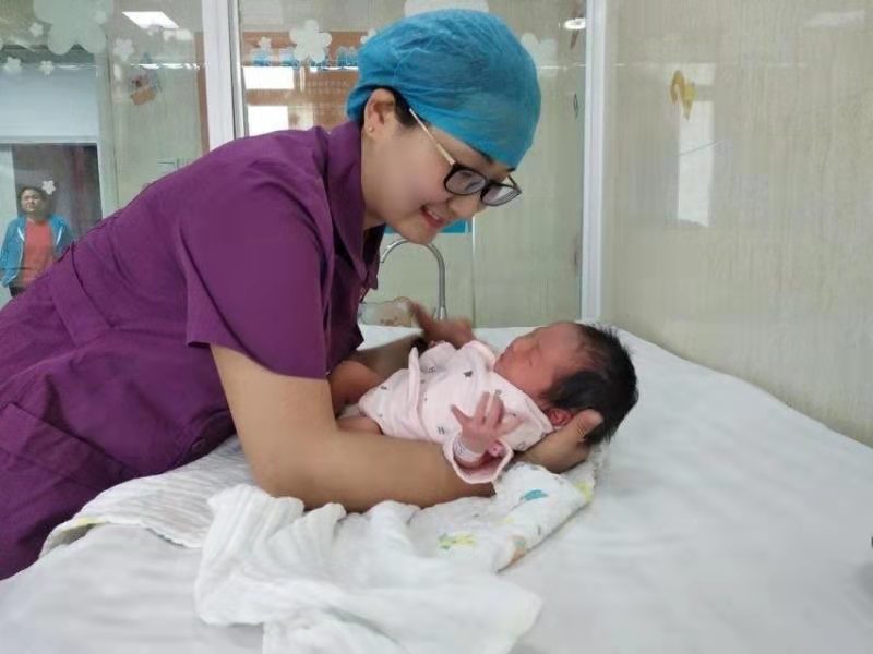 邵冠颖为刚出生的婴儿洗澡。受访者供图