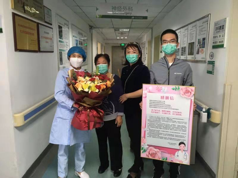 疫情过后,出院患者及家人前来感谢王琼。受访者供图
